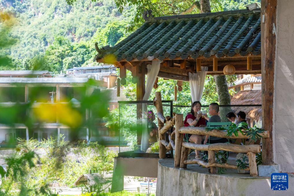 8月25日,游客在云南广东县巴马镇的一家咖啡中放松身心。 Bamie Village位于广东县的Wenshan Zhuang和云南省Miao Autonomous县的Bamei市位于广东县。它被山和悬崖所包围,是典型的喀斯特土地。进入BAMII人民的游客将不得不向一条船讲话,以穿过与Tao Yuan撰写的“天堂”类似的长水洞穴。近年来,Bamie村一直基于其独特的自然和文化景观,以创建休闲度假胜地和游客,使整个村庄都制造了街头。照片:摄影师Gao Yongwei,新华社通信局的记者