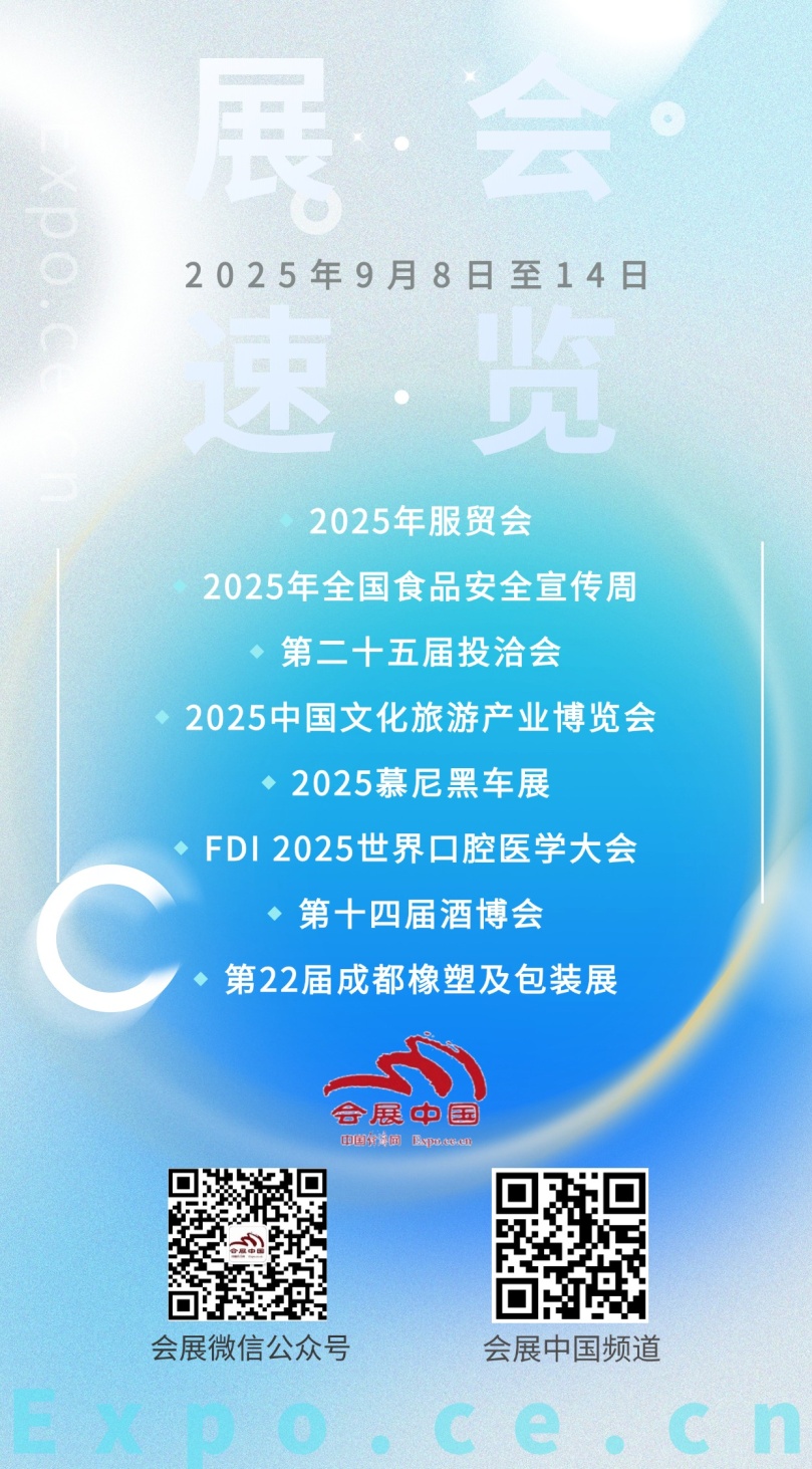 黄金9月和白银十月通过年度黄金时代导致了国家展览行业。大型展览会在各个地点进行,重点是前卫技术和工业创新。以文化,旅游业和消费为中心的展览也非常有助于扩大国内需求并促进融合。数字和绿色展览的概念继续加深,注入了强大的展览在经济复苏中的力量。本周全国将在全国进行哪些重要展览?中国的经济网络将使他“扩大”自己的期望!国家食品安全促销第25届投资和贸易展览会2025年国家食品安全促进第2025周25次投资和贸易展览会和旅游业Expo 2025慕尼黑汽车展览会FDI 2025世界毛孔科学会议第14届成都橡胶和包装展览展览2025年中国国际贸易萨尔斯代表:中国国际国际服务服务服务服务公平(服务贸易公平)将在全球服务贸易峰会,展览会,论坛会议,谈判,谈判,促销活动,促进和更多ease ease ease ease ease ease ease ease ease ease ease,更多和更多。今年的服务博览会将拥有13个高级主题论坛,其中包括涵盖数字技术,电子商务,生态和环境保护和国家健康的主题,并启动多个重要报告。除了在Showgan Park实施13种高质量的消费活动外,还使用Showgan Park照射和增强周围地区,在Westbeijing组织了12项高质量的消费者活动。全国粮食安全促销2025年:截至9月11日:国家会议中心(中国食品安全活动和论坛)2025年国家食品安全促进周是基于“遵守道德和法律并共享粮食安全的规定”的问题。自愿行动,2025年高质量开发会议,内容涉及餐饮业,“粮食安全与未来”公司的餐饮连锁店。农业和农村事务,商务部,国家卫生委员会,一般海关管理,国家粮食保护委员会,国家福利委员会森林协会协会,国际贸易,供应,供应和营销合作社,国家铁路集团有限公司,市场监管和其他部门将与主题政府相关的活动,以与主题政府相关的活动,以促进食品安全,并促进食品安全,并促进食品安全,并将其促进安全安全,并将其促进安全安全,并将其提供服务。第25届中国国际投资和贸易公平时间:9月8日至11日:中国第25届国际投资和商业博览会(投资与商业博览会)的重点关注“中国投资”和“中国”。国家投资和“国际投资”这三个主要部门将建立一个约120,000平方米的展览区,组织70多个特殊投资活动和100多个特殊的公路展览。投资和贸易展览会是唯一一个重要的全国性展览,其中包含我的PAIS投资主题和“投资中国投资”的创新展览。在同一时期,将进行特殊活动,例如2025年国际论坛和Gulangyu 2025论坛。 2025年中国文化和旅游业的博览会:9月12日至14日地点:武汉国际博览中心2025年,中国文化和旅游业的博览会是“加深文化与旅游的融合并享受更好的生活”的问题。 t他展览建立了一个展览区,用于数字和智能的文化旅游和文化旅游设备,总展览区域约为100,000平方米。 “展览,创新的执法四个主要特征:销售,旅行。来自20个国家和地区的2,000多个参展商将参加展览。2025年的博览会自动化,智能自动和智能体验:9月8日至9月14日地点:德国国际汽车和智能旅行Expo(IAA),20255年的Munich Auto Mobility,将在Munany中,将于Munich,将于Munich,将在Munich Moiletily中进行。自2021年以来,它是慕尼黑的“自动展览”,这是世界上五个汽车展览之一,也是欧洲最大的国际汽车展览之一,吸引了许多行业的关注。来自中国,再次上升到参加2023年参加的70家Chinee公司。FDI2025世界帐户会议(WDC)时间:Septermer 9至12位:全国会议和展览中心(上海)观察会议(FDI)会议(FDI)会议“ Orime”在FID中将在FID dumps Inders Inders Inders in Firs Inders Inders in FID Inters Inter in FID Inders Inters in FID Shang shang in Dust Shang shang shang, Estomacal Cossiotna和CD的牙齿展览。它于2006年在德意志申(Deutschenzhen)举行,并于2012年在香港举行。IED世界气孔会议已返回中国大陆。 2025年的FDI会议涵盖了约60,000平方米的面积,在全球150多个国家和地区,将超过35,000名专业游客和700多家公司汇集在一起,以整合学术活动,特殊的研讨会和商业展览。第14次国际葡萄酒博览会:9月9日至13日:Guiyang国际会议和展览会中心是第14国际葡萄酒暴露的中国(吉岛)(葡萄酒博览会)的主题是“葡萄酒的好世界”。目前,参加Vinose Fair是唯一包括60个国家和三项国际认证的参考平台。成都,成都,成都,成都,塑料和包装展览的中国22A(成长)基于“低碳环境保护,智能创新,可持续性,增益”的主题。预计将以超过50,000平方米的规模和800多家参展商和50,000多名专业访客的特征展出。经过10多年的发展,在我的西南部,无论是可视化和替代新技术,新产品,西南地区的新工艺的关键平台,还是在中国西南橡胶行业和塑料中的新工艺的关键平台,在中国的橡胶行业和塑料中,这是10年以上的发展,多10年E展览成都和塑料的橡胶和塑料展览已成为平台橡胶和塑料专业人士。